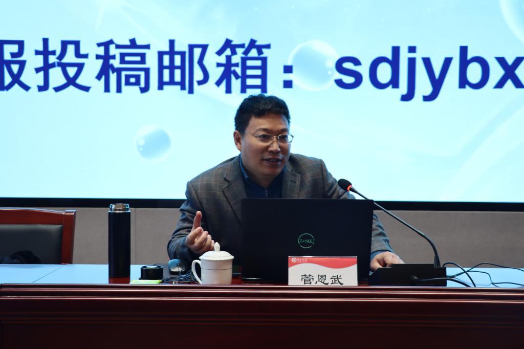 为深入学习贯彻习近平总书记关于宣传思想文化工作的重要指示精神和全国宣传思想文化工作会议精神,1月5日上午,我校采用同步直播方式在薛城校区崇德楼报告厅、市中校区综合楼学术报告厅举办新闻采访与写作专题报告会,山东教育报主编管恩武应邀作报告。各学院、各部门分管宣传工作的负责同志、新闻宣传员,以及二级学院负责宣传的主要学生干部到场聆听报告。