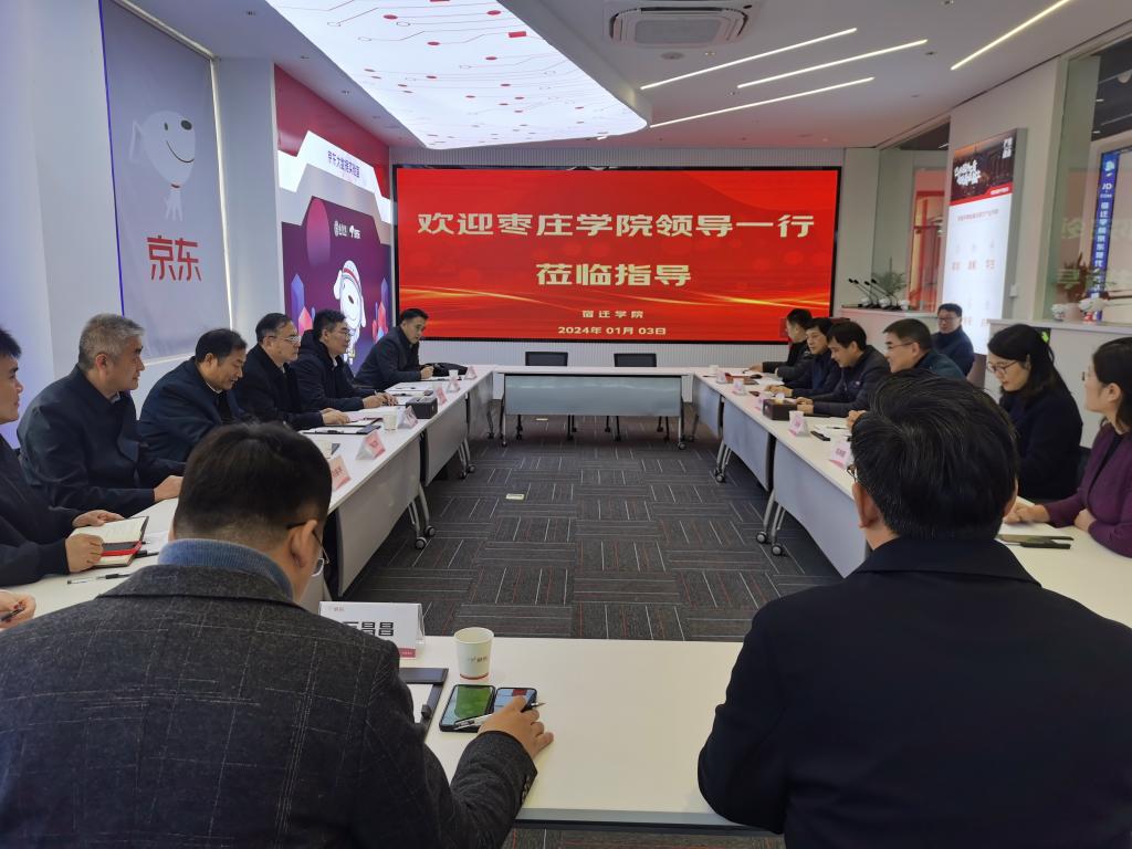 为全面深化产教融合,持续推进现代产业学院建设,1月3日,学校党委书记高峰,党委委员、副校长安涛带领教务处、合作发展处、经济与管理学院、传媒学院负责同志一行6人到宿迁学院考察学习京东现代产业学院建设情况。