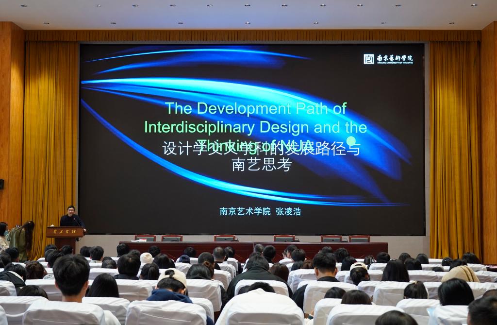 张凌浩以“设计学交叉学科的发展路径与南艺思考”为题作报告。报告基于中国特色哲学社会科学三大体系建设维度和数字中国建设的时代语境,探讨了设计学交叉学科的发展路径,提出中国设计学科的可持续发展度。同时,结合国外设计学发展趋势以及南京艺术学院的成功探索与实践,详细阐释了学术队伍、人才培养、科学研究和支撑条件等可持续发展度的科学内涵。