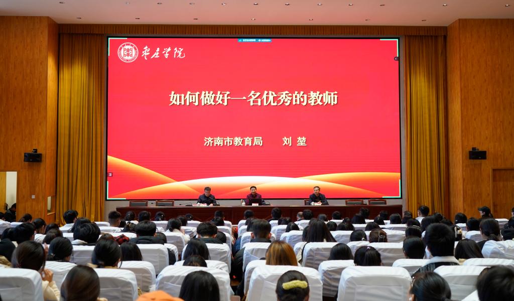 11月16日下午,济南市教育局原副局长、山东省实验中学原校长刘堃应邀来校作主题报告。校党委书记高峰,党委委员、副校长丰雷出席报告会,相关部门负责同志、二级学院学工办主任及师范专业师生代表600余人参加报告会。新疆喀什援疆支教团师生通过网络聆听了报告会。