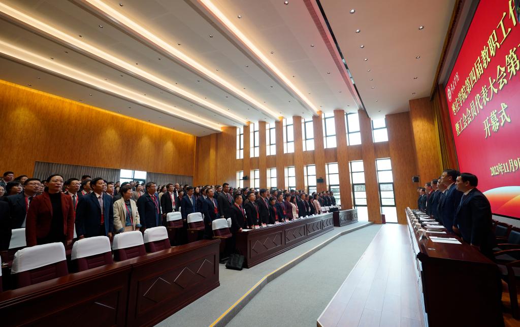 上午9:30,大会在雄壮的国歌声中正式开幕。开幕式由校党委委员、副校长李目海主持。首先,校党委书记高峰致开幕词,他指出,自第四届一次“双代会”以来,学校始终坚持以习近平新时代中国特色社会主义思想为指导,全面贯彻落实党的二十大精神,坚持党对学校工作的全面领导,坚持社会主义办学方向,坚持立德树人根本任务,深入落实学校“十四五”事业发展规划,以建设国内一流应用型大学为目标,以硕士学位授予单位建设为抓手,以改革创新为动力,全面加强内涵建设,全面深化综合改革,全面推进依法治校,全面从严管党治党,在人才培养、科学研究、社会服务、文化传承创新和国际交流合作等方面均取得了显著成绩。高峰强调,“双代会”是全校教职工参与学校民主管理和监督的基本形式,是促进学校决策民主化、科学化的重要渠道,也是激发教职工主人翁意识的有效途径,希望各位代表切实增强代表意识、积极发挥代表作用、充分提升代表能力,把这次大会开成一次解放思想、改革创新的大会,一次凝心聚力、团结奋进的大会。