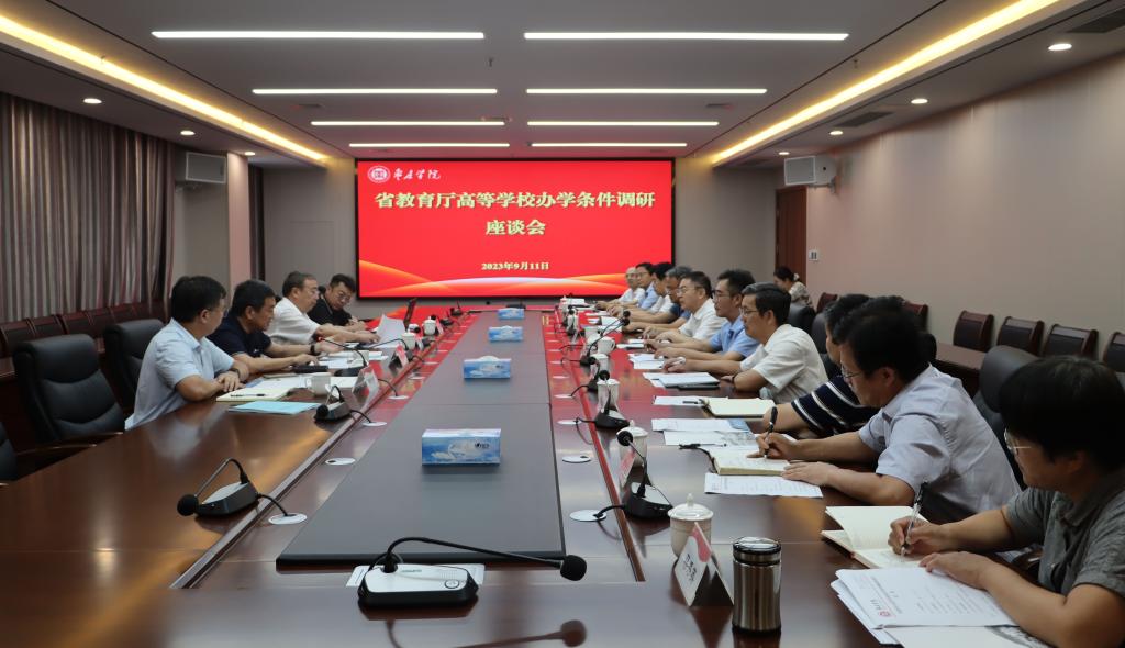 9月11日下午,省教育厅发展规划处主任杨光宇一行4人来我校调研办学条件。校党委书记高峰热情接待了杨光宇一行,双方在薛城校区明理楼519会议室举行座谈会。省教育基本建设学会理事长张书明、省教育基本建设学会秘书长傅道春,我校党委委员、副校长安涛,党委委员、统战部部长林勇出席座谈会。学生工作处、人事处、教务处、校园建设与管理处、国有资源管理处、发展规划处、实验管理中心负责人参加座谈会。