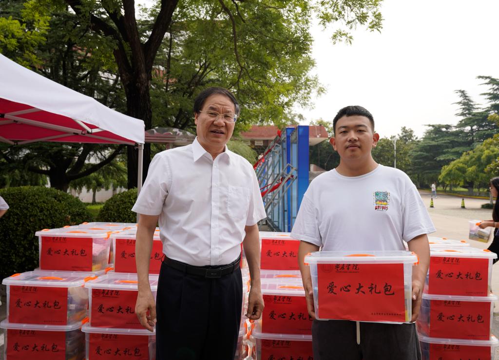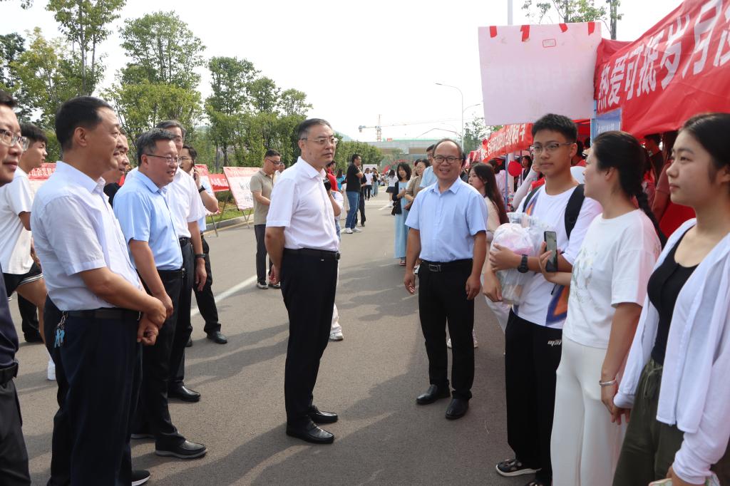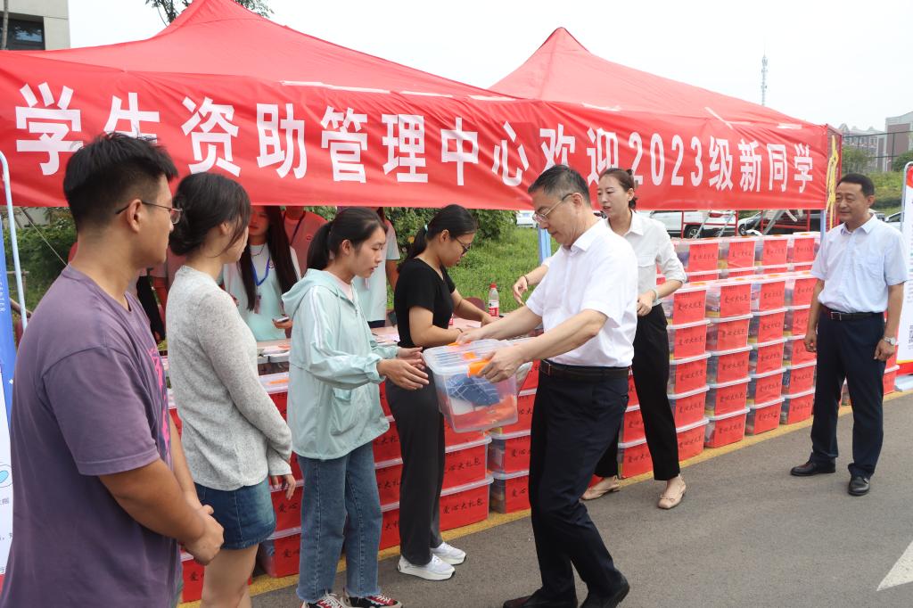 校党委书记高峰,校领导路绪剑、丰雷在薛城校区迎新。每到一处,高峰都详细了解各单位特色迎新举措、绿色通道以及新生报到情况,并对师生们的辛勤工作和周到服务表示感谢。“欢迎新同学,家长辛苦了……”在与新生及家长的交流中,高峰介绍学校的基本情况,询问新生们的入学感受、专业方向以及大学生涯规划,并向家庭经济困难新生颁发“爱心大礼包”,向退役士兵新生代表表示祝贺。高峰勉励新生要合理规划大学生涯,制定好学习计划,努力成长为德智体美劳全面发展的社会主义建设者和接班人,并表示学校将为学生创造良好的学习生活环境,帮助新生尽快适应、融入校园生活。