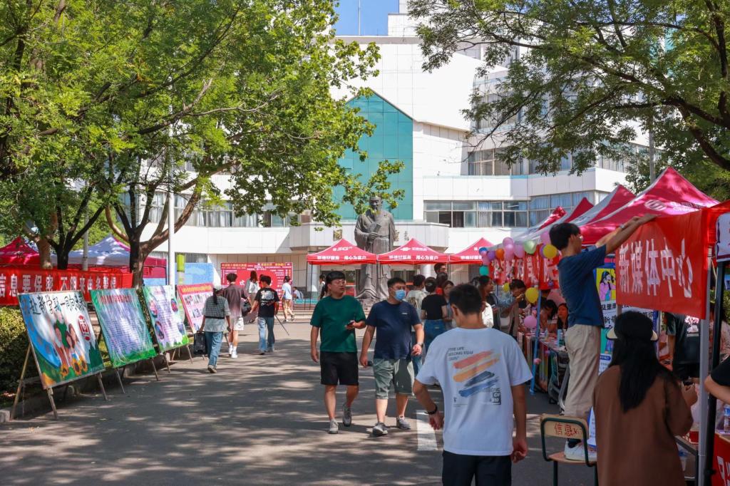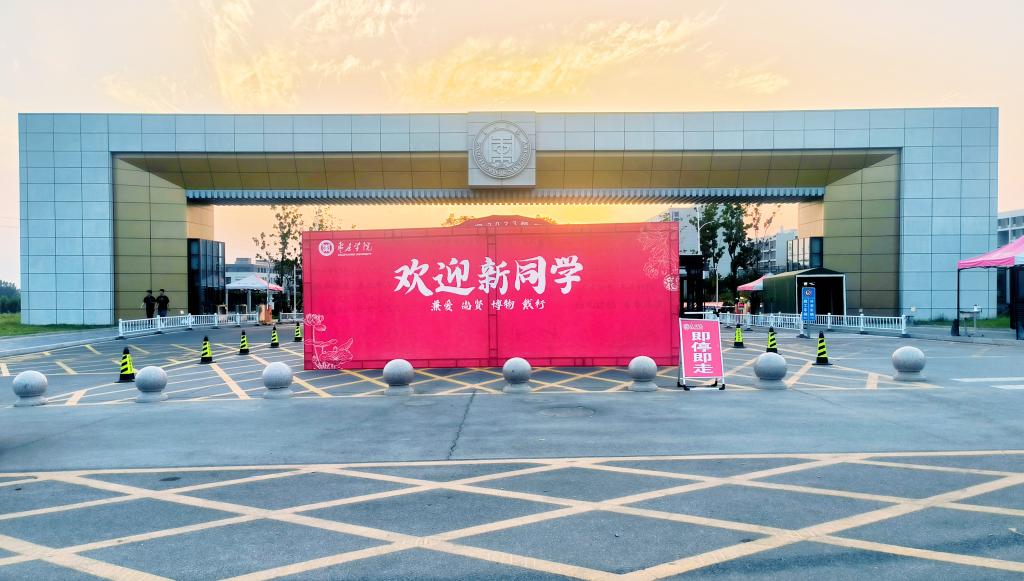校园内条幅高悬、彩旗飘扬、展板醒目、青春洋溢。各学院精心设置新生接待点,迎新展板、签名墙、合影框等丰富多彩、各具特色,随处可见的迎新标语和指示牌,别致的迎新门廊,“我和大学的第一张合影”“新生名单”背景墙,随着节奏起伏变化的音乐喷泉,校园里处处洋溢着浓厚热烈、和谐喜庆的迎新氛围。校领导的热切期望、父母的殷殷嘱托、全校迎新工作人员的齐心保障,共同为枣院播撒下青春与梦想的种子。