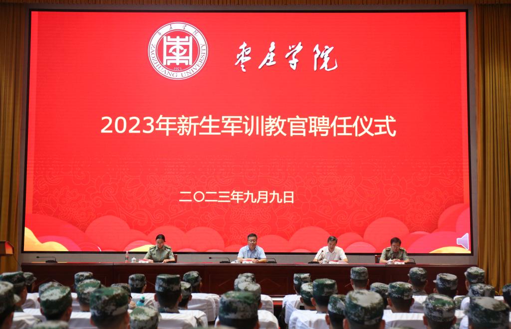 9月9日下午,我校在薛城校区崇德楼报告厅举行2023年新生军训教官聘任仪式,校党委委员、副校长丰雷出席仪式并讲话。学校武装部负责同志、全体2023年新生教官参加仪式。聘任仪式由校武装部副部长张昆主持。