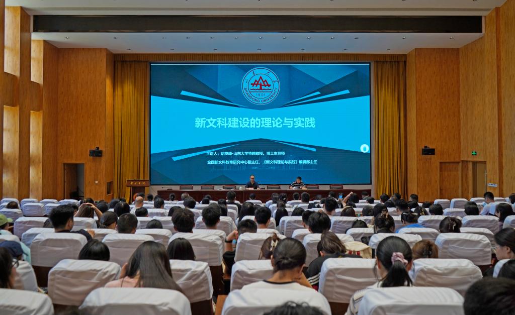 下午,胡友峰以“新文科建设的理论与实践”为题作学术报告,报告由教务处处长房永磊主持。报告围绕“新文科”的内涵和时代背景进行了精彩阐释和详细论述。他指出,“新文科”是新时代国家在高等教育学科发展大背景下提出的,着眼于复合型、应用型人才培养目标的全国性人文社科学科专业建设的总体战略,其内涵丰富,定位精准,包括了价值引领、学科交叉等要求。同时,报告还就如何开展高水平学术研究以及申报高层次课题进行了经验分享。