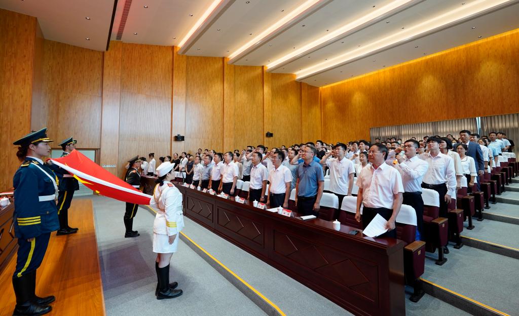 会上,首先进行了2023年新教师入职宣誓。城市与建筑工程学院新入职教师张宜伟领誓,全体新教师紧握右拳,面向国旗,庄严宣誓,立下“为党育人、为国育才”的铿锵誓言。