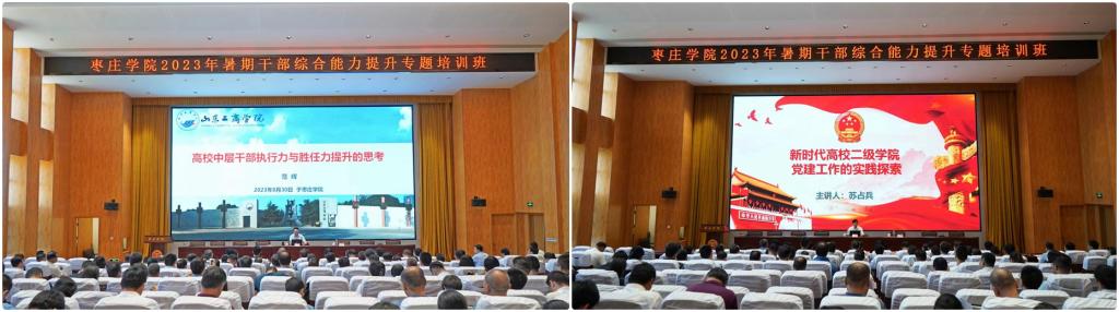 为推进学习贯彻习近平新时代中国特色社会主义思想主题教育走深走实,切实加强我校干部队伍建设,进一步提高干部适应新时代、应对新挑战、开拓新局面的综合能力,8月29日至9月1日,我校在薛城校区举办2023年暑期干部综合能力提升专题培训班,综合运用专家讲授、分组研讨、观看视频、交流汇报等多种形式展开培训。校领导高峰、李文喜、李目海、路绪剑、丰雷、安涛、张昌林、林勇,以及全校副处级以上干部参加培训。