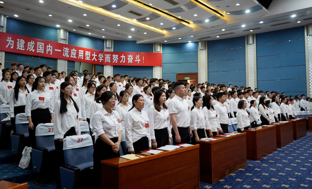 6月25日上午,我校在综合楼学术报告厅召开第六次学生代表大会,校领导丰雷、张昌林、林勇,共青团枣庄市委副书记颜蔚然出席大会开幕式。学生工作处、校团委负责人,各二级学院团总支书记、学生代表、列席代表共400余人参加大会。