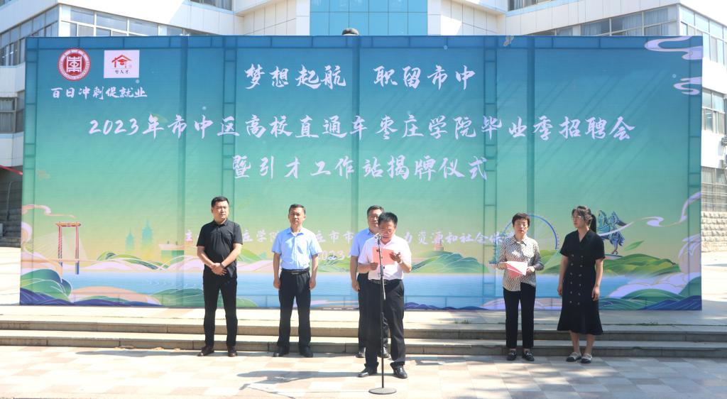 丰雷在致辞中表示,学校坚持以学生发展为中心,持续深化教育教学改革,人才培养质量不断提升。近三年在国际国内创新创业大赛、学科专业竞赛、科技创新比赛等活动中获省级以上奖励1000余项,硕士研究生考取率34%以上,就业率连续保持在省内同类高校前列,就业质量受到用人单位和社会各界一致好评。学校相关部门和院部要紧密结合市中区经济社会发展需要,有效对接企业行业,立足枣庄、服务枣庄,采取多项措施推进毕业生留枣就业创业。