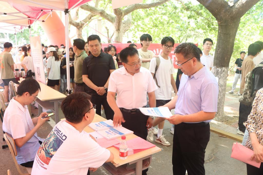丰雷与孙天峰共同为“引才工作站”揭牌。揭牌仪式结束后,与会领导莅临招聘会现场指导,同企业招聘人员、求职毕业生亲切交谈,深入了解企业招聘需求,亲切询问毕业生们的求职意向和应聘情况。此次招聘会共邀请到30多家用人单位,提供超过400个岗位。