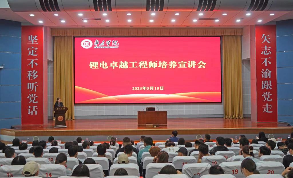 下午,我校在综合楼一楼报告厅举办锂电卓越工程师培养宣讲会,尹庆玲、华翔、周宗林、赵鸿斌应邀为锂电卓越工程师人才培养作专题讲座。