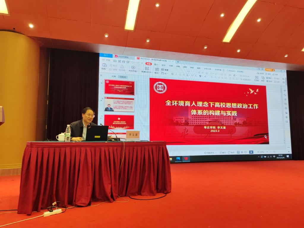 3月24日-26日,由中国教育发展战略学会思想道德建设专业委员会主办的“新时代高校思想政治教育创新发展暨思想道德建设专委会2022年年会”在昆明召开,来自全国92所高校的200余名专家学者参加会议。我校党委副书记、校长李文喜应邀出席并作报告。