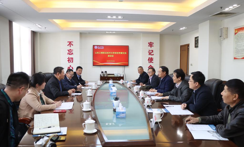 3月23日下午,山东工程职业技术大学原党委书记、名誉校长胡小林,党委副书记、副校长李梅松一行5人来我校考察交流,重点学习借鉴我校校史馆、世界语馆建设与管理的经验做法。座谈交流会在市中校区综合楼八楼会议室举行,校党委副书记、校长李文喜,党委副书记曾宪明,党委委员、宣传部部长张昌林出席座谈会。山东省中华职教社秘书处人员,我校办公室、合作发展处等部门负责同志参加座谈会。