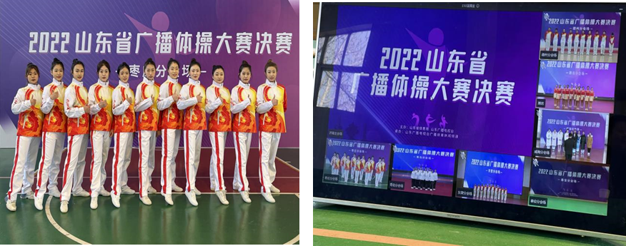 本次决赛创新办赛,以视频连线同步直播方式进行,裁判员集中在主会场,通过直播视频观看各队比赛并打分排名。山东广播电视台充分利用闪电新闻等融媒体平台,开办了专栏,播发广播体操宣传片、教学片等。比赛中,我校队员标准规范、整齐划一的动作,朝气蓬勃、昂扬向上的精神风貌,获得了评委的一致好评,充分展现了我校的体育技能教学水平及学生的扎实基础,也进一步提高了我校的美誉度和知名度。