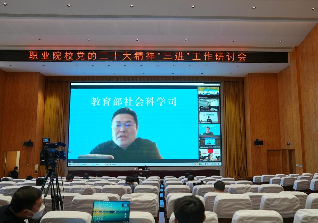 教育部职成教司副司长谢俐指出,本次研讨会对交流典型经验、发挥示范引领,推动职业院校扎实做好“三进”工作具有积极意义。做好党的二十大精神“三进”工作,重点要提高思想认识、明确工作任务、抓好贯彻落实,把“为什么进”“进什么”“怎么进”的问题想清楚,把党中央的要求领会好、落实好。