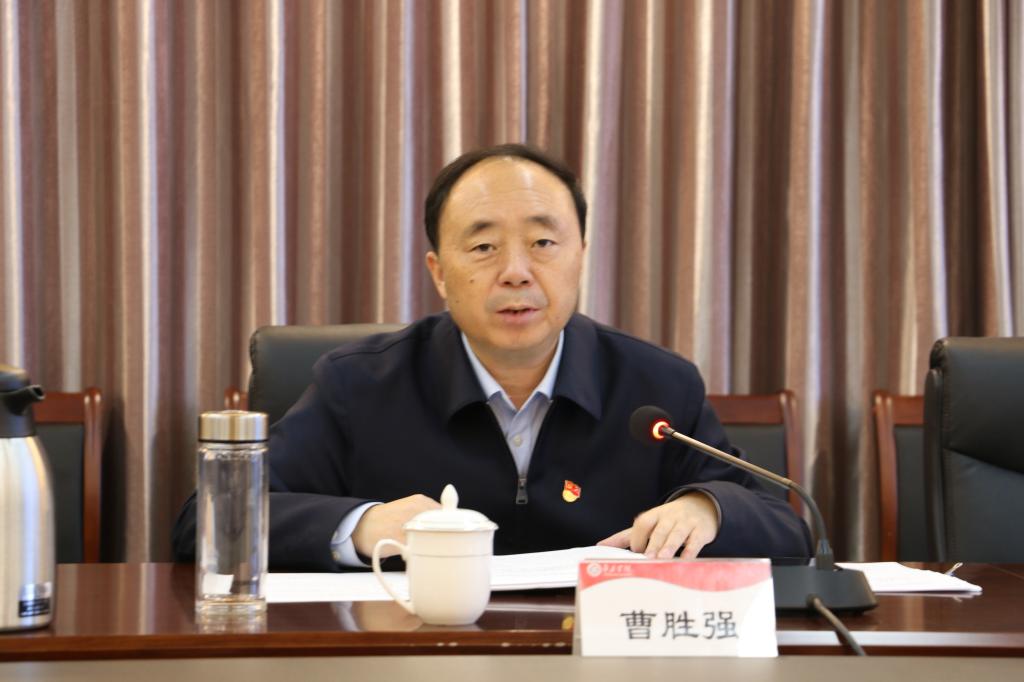 曹胜强强调,要深入学习领会,把思想和行动统一到习近平总书记重要讲话精神上来。遭遇新冠肺炎疫情以来,党和国家不断适应新冠病毒变异新特点和疫情防控新形势,先后出台了九版疫情防控方案和最新的“二十条优化措施”,新冠肺炎重症率和病亡率始终保持在较低水平。“二十条优化措施”是对第九版防控方案部分措施的优化和完善。“二十条优化措施”不是放松、更不是“躺平”,而是要求更科学、更精准、更规范、更快速地开展防控。要立足于防、立足于早、立足于快,坚决防止认识上存在偏差、行动上迟疑犹豫,坚决克服麻痹思想、厌战情绪,坚决堵住落实措施上的“跑冒滴漏”,科学精准做好疫情防控各项工作。要强化政治自觉,切实把思想和行动统一到党中央决策部署上来,坚定拥护“两个确立”,坚决做到“两个维护”,加强和改进学校思想政治工作,教育和引导师生深刻把握“三个坚定不移”,避免和消除对措施优化调整的误读,压紧压实意识形态工作责任制,筑牢群防群控基础。