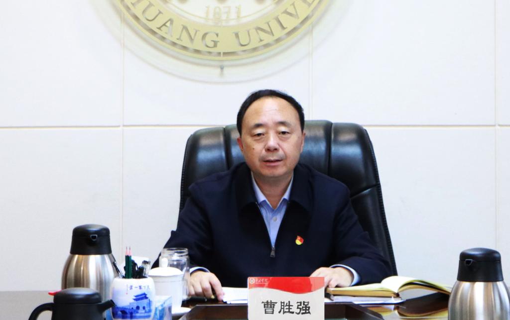 11月21日下午,校党委在综合楼八楼会议室开展专题学习,学习习近平总书记在瞻仰延安革命纪念地时的重要讲话精神。校党委书记曹胜强主持学习并讲话,校领导李文喜、曾宪明、李目海、路绪剑、丰雷、安涛、张昌林、林勇,以及办公室负责人参加学习。