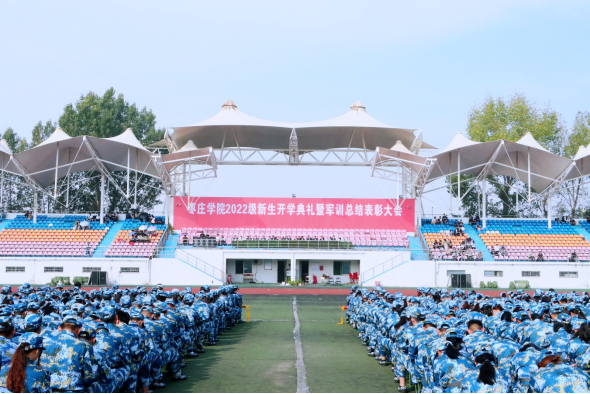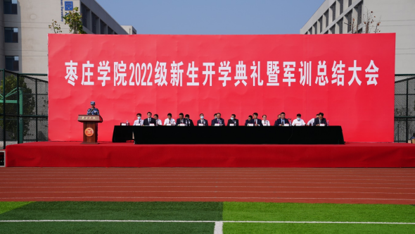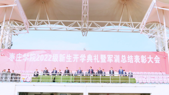喜迎二十大,奋进新征程。9月29日、30日上午,我校分别在薛城校区体育场、市中校区西田径场隆重举行2022级新生开学典礼暨军训总结表彰大会。校领导曹胜强、曾宪明、李目海、路绪剑、丰雷、安涛、张昌林、林勇出席典礼。学校相关部门负责人、各学院领导、辅导员、教师代表、全体新生和教官参加典礼。典礼仪式由党委委员、副校长丰雷主持。