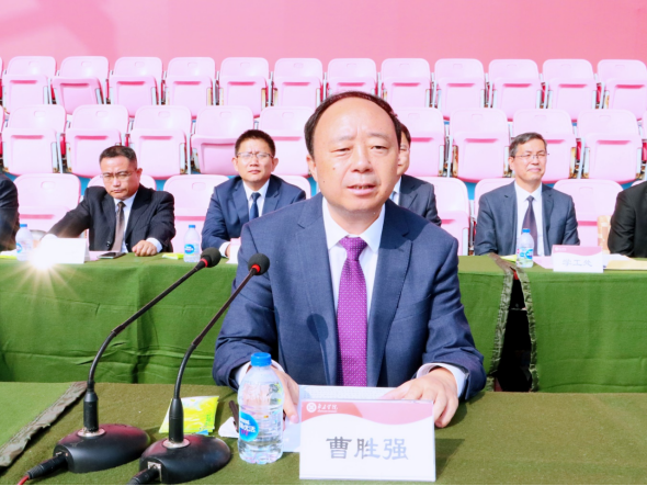 校党委书记曹胜强致辞。他首先代表学校向2022级全体新生表示热烈欢迎,对同学们的军训成果表示充分肯定,向辛勤培育他们的家长和老师表示崇高敬意,向为本次军训付出辛勤劳动的教官和老师表示衷心感谢。在简要回顾学校近年来取得的办学成就和发展成果后,曹胜强深情寄语2022级全体新同学,提出四点殷切期望: