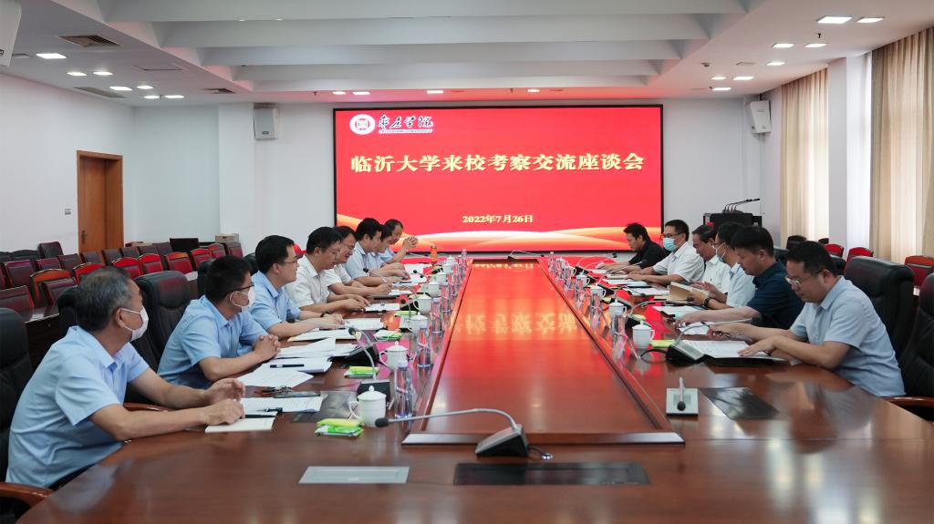 7月26日下午,临沂大学党委书记王焕良一行6人来校考察交流。党委委员、副校长李目海,党委委员、统战部部长林勇在综合楼三楼会议室与王焕良一行举行座谈。办公室、人事处、教务处、科技处、合作发展处、音乐与舞蹈学院等相关职能部门和学院负责人参加座谈。