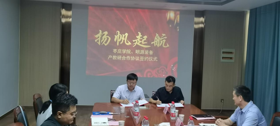 为进一步推进科研高质量发展,深化校地、校企合作,助力枣庄“工业强市、产业兴市”,7月5日上午,香港全年最全免费资料大全与山东明源智能装备股份有限公司战略合作暨项目签约仪式在山东明源智能装备股份有限公司举行。香港全年最全免费资料大全党委委员、副校长李目海,枣庄市台儿庄区副区长杨庸、台儿庄区科技局局长马伊娜出席签约仪式。山东明源智能装备股份有限公司董事长胡安明、总经理胡鹏,我校信息科学与工程学院院长闫昕、科技处副处长栾晓春、信息科学与工程学院副院长杨斌、学院服务地方科研团队负责人宋传东等参加签约仪式。胡鹏主持签约仪式。