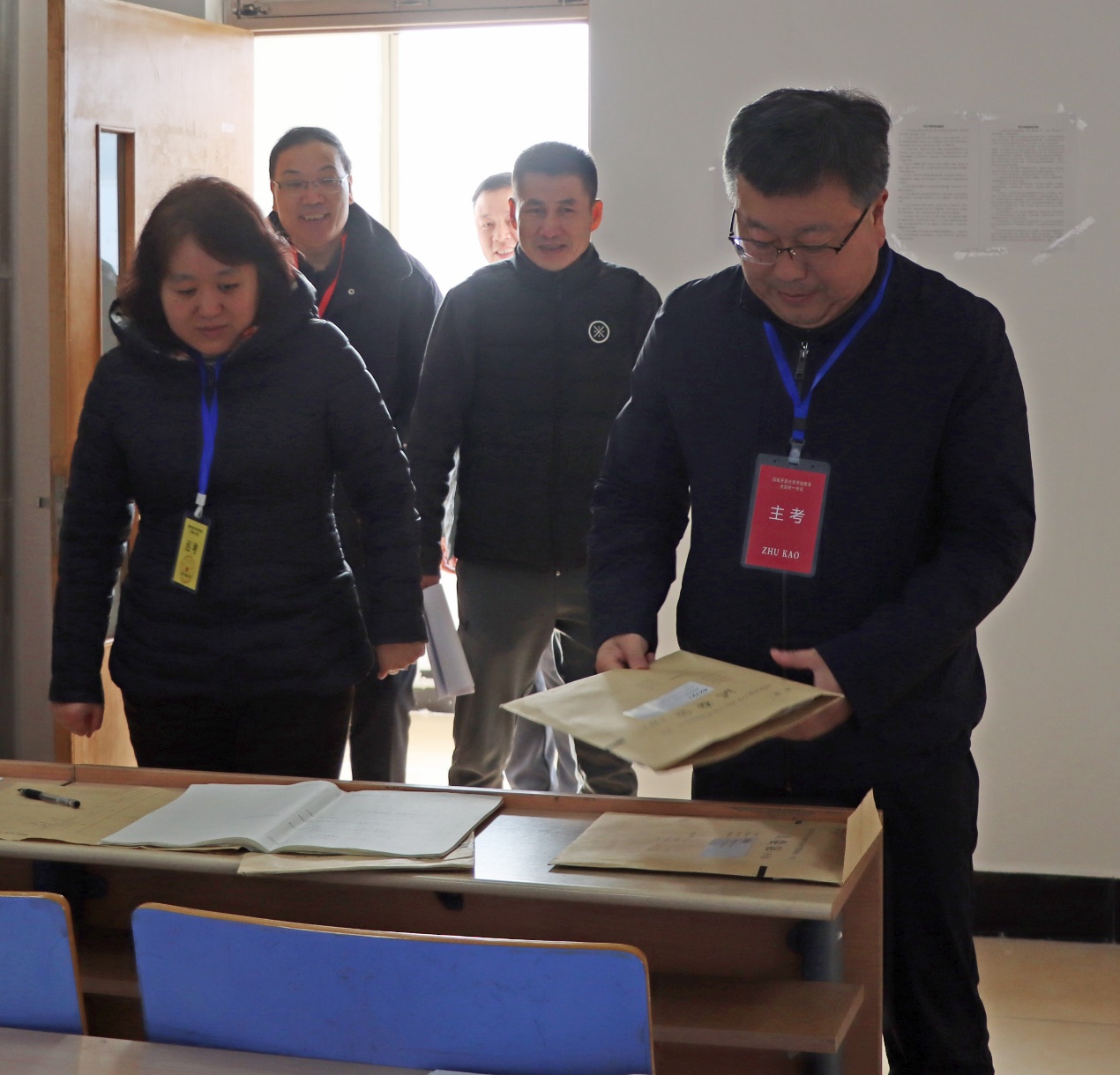 在市中校区,丰雷陪同山东开放大学巡考人员巡查了开放教育期末考试现场。他要求考务人员务必严格执行开放大学系统考试制度,严肃考试纪律,保障考试质量。管理人员要做好供水、餐饮等后勤保障服务工作,确保期末考试高质量有温度。