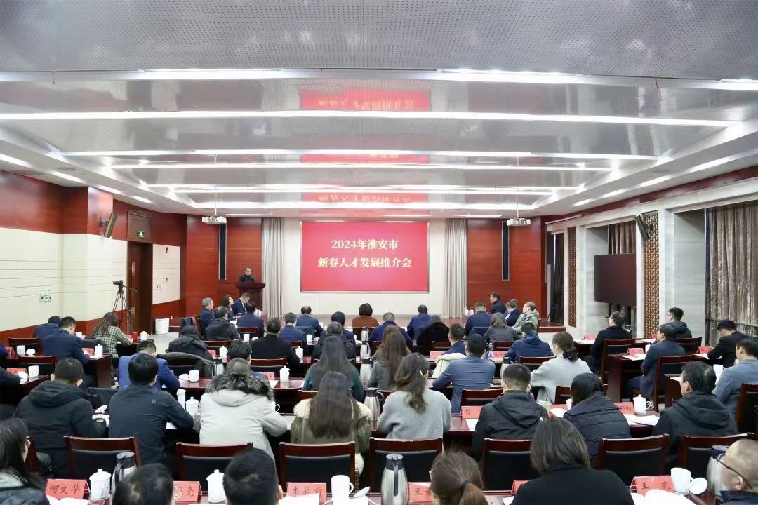 1月11日,淮安市举办2024年新春人才发展推介会。淮安市政府副市长王向红、副秘书长唐广出席活动。校党委委员、副校长丰雷出席活动并致辞,学生工作处负责人参加活动。