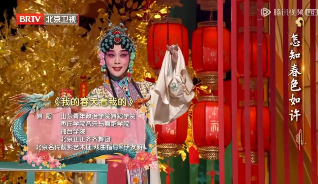 2024北京广播电视台春节联欢晚会以“我的春天,看我的”为主题,聚焦“闪闪发光的平凡人”,通过高品质艺术形式与高科技技术手段的融合,让亿万观众在其乐融融的欢声笑语中喜迎新春。在本场晚会中,开场舞《我的春天看我的》充满希望与正能量,传达出对美好生活的期望;参演明星李若彤、阿云嘎、白金与我校学生共同演绎,祈愿新的一年四海升平、风调雨顺。《大戏看北京》融合多种元素串烧,其中春天的芭蕾篇章伴舞全部由我校学子承担;歌舞《“京”彩绽放》在星河之上打造浪漫舞台,让流转的时光和祝福尽情表达,我校学生与胡彦斌和毛晓彤互动跳舞。歌舞《雨燕回正阳》作为晚会的谢幕,在正阳门的背景中,娓娓诉说了北京雨燕“万里把家回”的故事。