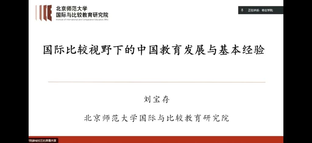 22日,我校邀请北京师范大学国际与比较教育研究院院长刘宝存教授做线上培训报告。刘宝存教授以《国际比较视野下的中国教育发展与基本经验》为题,从国际比较视野下的中国教育发展、中国教育改革与发展的基本经验以及地方高校如何实现高质量发展等方面进行了阐述,通过大量详实的数据和对比分析,勾勒出我国教育的发展情况及在全球教育发展中的定位,为我们充分认识教育强国基础工程、扎实推进高等教育改革与发展、推进我校高质量发展提供了指导和借鉴。