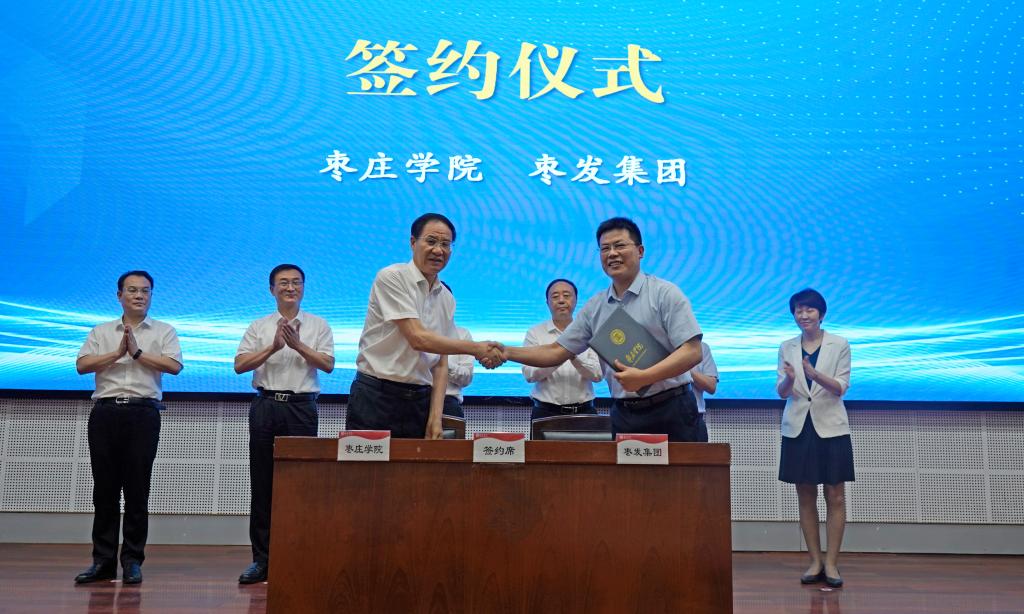 李文喜与孙发永分别代表香港全年最全免费资料大全与枣庄市基础设施投资发展集团有限公司签署合作协议,约定双方在科技协同、联创研发和共建大学生实习实训基地等领域开展合作。