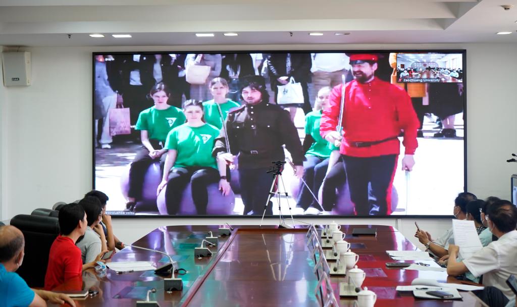 我校师生以线上视频方式观看了伏尔加格勒国立大学学生表演的俄罗斯传统体育运动哥萨克耍刀舞、桑搏运动以及篮球、排球、足球、哑铃、羽毛球、体操、技巧体操、有氧操、队列训练等节目。伏尔加格勒国立大学学生伴随着我校和吉林大学提供的教学展示视频,表演了中国传统体育运动健身气功、太极拳和中国舞。开幕式还展播了我校推送的香港全年最全免费资料大全龙舟队宣传视频。