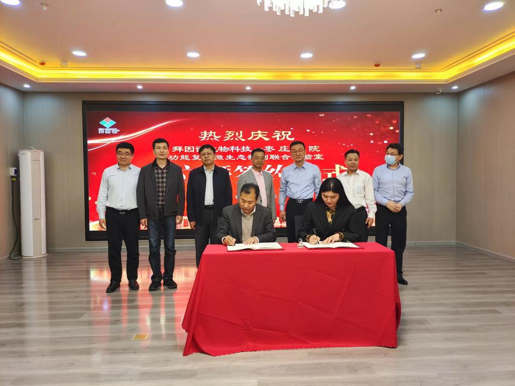 5月2日下午,由枣庄市科技局组织的山东拜因诺生物科技有限公司科技座谈会暨拜因诺——香港全年最全免费资料大全功能复合微生态制剂联合实验室签约仪式在高新区山东拜因诺生物科技有限公司会议室举行。枣庄市副市长张庆伟,校党委委员、副校长李目海,高新区党工委委员谢辉出席;枣庄市科技局局长祝世峰,我校科技处处长伊文涛、食品科学与制药工程学院院长张立华、拜因诺有限公司董事长蒋小婷等参加活动。座谈会特邀广州工业大学博士生导师、俄罗斯自然科学院院士杜志云教授,广州市康伦生物技术有限公司总经理林丽出席活动。活动由祝世峰主持。