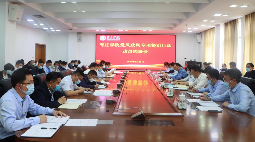 4月25日下午,我校在市中校区综合楼三楼会议室召开党风政风专项整治行动动员部署会。校党委书记、党风政风专项整治工作领导小组组长曹胜强主持会议并讲话,校领导曾宪明、李目海、路绪剑、丰雷、安涛、张昌林、林勇出席会议。各部门、单位负责人参加会议。
