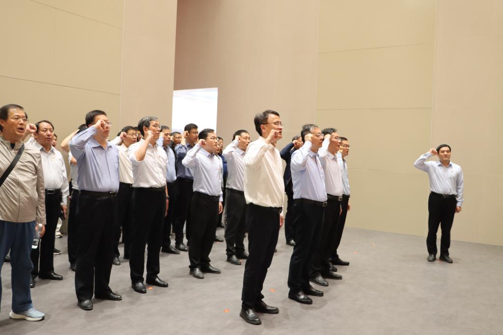 在宣誓厅,全体党员干部面对党旗庄严宣誓,重温入党誓词,不忘党员初心,坚定理想信念,强化使命担当。