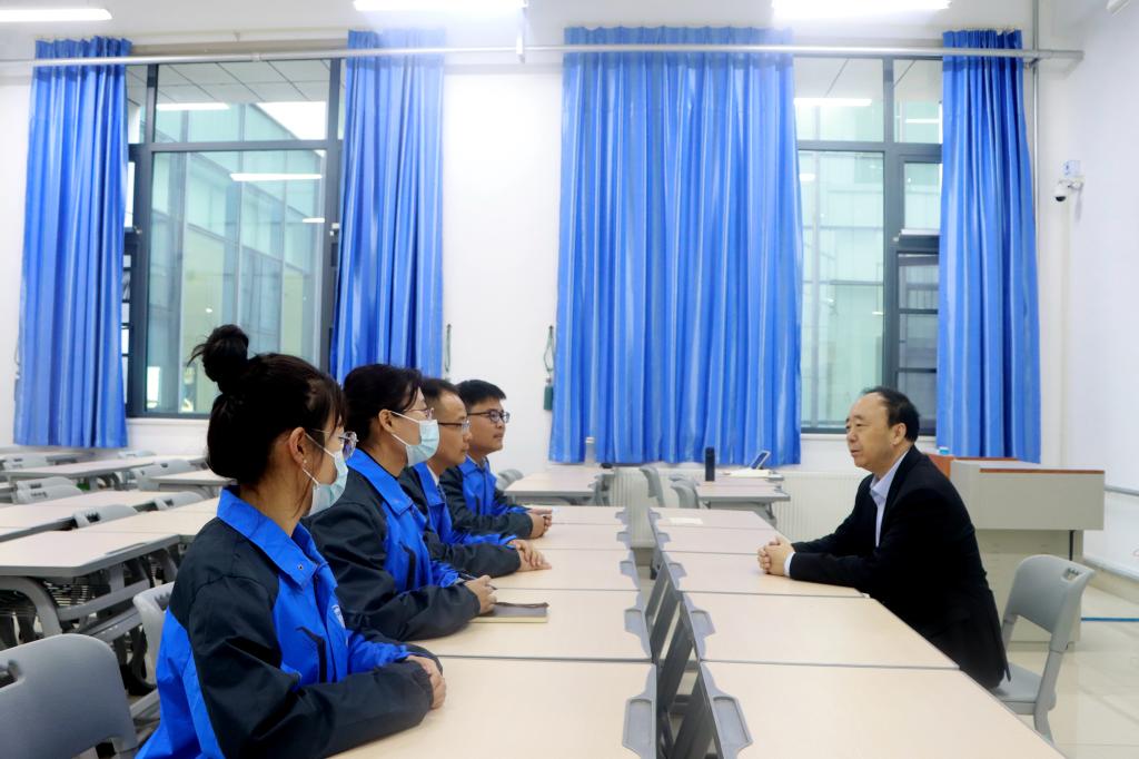 出征仪式前,曹胜强与4名带队教师进行了座谈交流,细心叮嘱他们援疆支教期间在疫情防控、学生管理、教育教学等方面的注意事项。