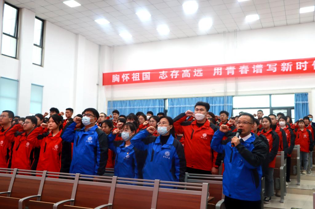 在支教团教师代表田春雨带领下,支教团师生进行了集体宣誓。