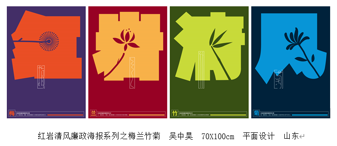 近日,由中华人民共和国文化和旅游部、中国文学艺术界联合会、中国美术家协会主办的“第十四届全国美术作品展览”艺术设计展区复评结果揭晓,我校美术与艺术设计学院吴中昊老师的平面设计作品《红岩清风廉政海报系列之梅兰竹菊》成功入选。