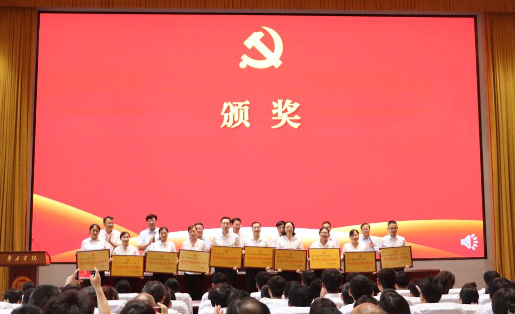 校党委委员、副校长丰雷宣读了《第四批“全国党建工作样板支部”培育创建单位名单》《第三批“全省党建工作标杆院系”培育创建单位名单》《关于表彰先进基层党组织、优秀党务工作者、优秀共产党员的决定》《关于表彰2022-2023年度思想政治工作先进集体、先进个人的决定》,校领导共同为受表彰的集体和个人颁奖。