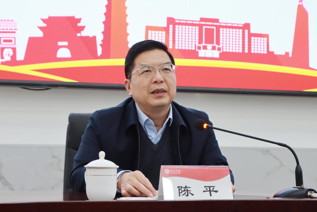 最后,陈平深情寄语枣院学子:珍惜韶华,奋发有为,努力为现代化强市建设贡献青春力量。一要立鸿鹄之志。希望同学们坚决听党话、感党恩、跟党走,深入学习贯彻习近平新时代中国特色社会主义思想,既胸怀远大理想,又实事求是,做好人生规划,努力在追梦道路上实现人生价值。二要练过硬本领。希望同学们珍惜大学时光,既努力学习理论,又注重社会实践,既术业专攻,又触类旁通,既独立思考,又团结合作,下得真功夫、求得真学问,切实增强报效祖国、服务社会本领。三要塑高尚品德。希望同学们从百年党史中汲取精神力量,从自身内省中提升道德修养,树立正确的世界观、人生观、价值观,系好人生第一粒扣子,迈好人生每一步。四要做奋斗青年。奋斗是青春最亮的底色,希望同学们无论在学校还是将来步入社会报效祖国,都要以一往无前的拼搏进取精神,以脚踏实地的作风,百炼成钢、破茧成蝶,书写精彩华章。