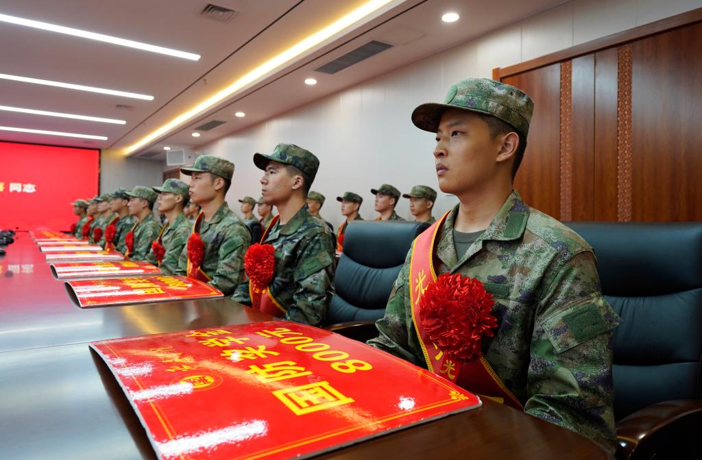 欢送会在庄严的国歌声中拉开帷幕,全体人员起立奏唱国歌。入伍新兵身着军装,胸戴红花,个个精神抖擞、意气风发。他们依次进行自我介绍,分享了参军入伍的动力与想法,表示热血青年投身军营、报效祖国,方能不负韶华,在军队这座“大熔炉”中锻炼自己,百炼成钢。