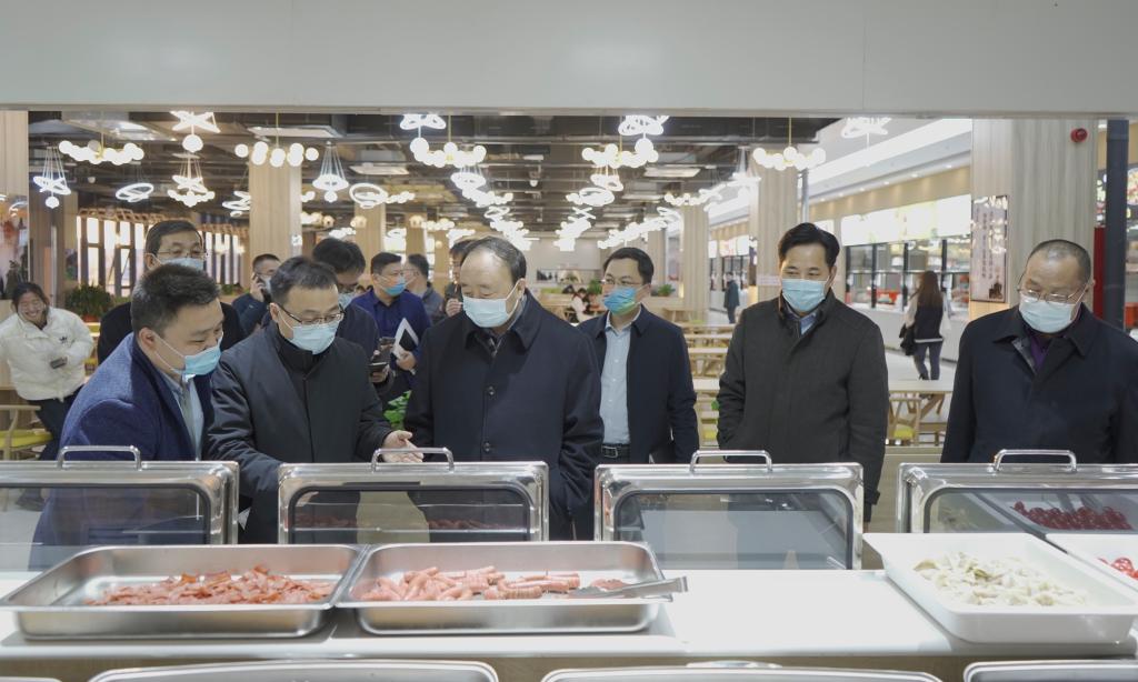 校领导一行首先来到学生宿舍,深入考察学生宿舍基本设施情况和学生党团活动室的运行使用情况,并与同学们亲切交流,详细了解同学们的学习和生活情况。随后,校领导一行调研走访了学生餐厅,实地调研餐厅的菜品供应、饭菜质量等,详细询问了学生对食堂饭菜价格和口味的需求。曹胜强强调,学校各项工作都要坚持以服务学生为导向,以学生为主体,要把学生满不满意作为检验工作成效的标准。宿舍和餐厅的服务质量直接影响同学们的生活幸福指数,要经常开展学生对服务质量的满意度调查,对同学们遇到的问题及时处理。同时,要抓好安全管理工作,继续完善安全管理制度,提升管理水平,落实安全责任,为同学们学习、生活创造温馨舒适的环境。