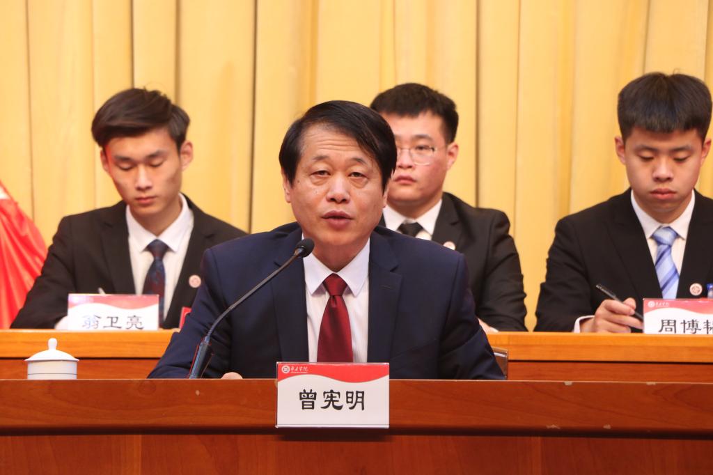 曾宪明代表学校党委对代表们提出四点希望:一是坚定理想信念,牢记初心使命,用马克思主义真理光芒照耀前行之路;二是锻造真才实学,发奋成长成才,努力成长为德智体美劳全面发展的社会主义建设者和接班人;三是提升道德境界,砥砺人格品行,努力成为青年之标杆、时代之英才;四是聚焦职能定位,改进工作作风,发挥好广大学生的桥梁和纽带作用。