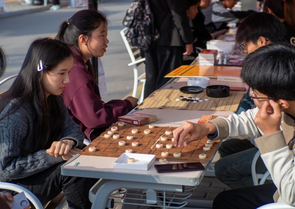 在游园会现场,思想政治类、文化体育类、创新创业类、志愿公益类、学术科技类等六类社团通过特色展示、互动游戏、集章兑礼、沉浸体验等方式,展现学生社团多元发展的风采与活力。大地书画协会、文萃印社、民间手艺协会把原创的立体纸艺、非遗剪纸、篆刻书签、竹编画等打造为美育创意集市;奚仲机电创新协会、PLC爱好者协会把自制参赛的机器人让同学们现场体验科技的魅力;博艺轩通过各类棋艺对决来赢取奖品及印章;红十字协会化身志愿者与宣讲员,协助枣庄市中心血站开展无偿献血工作。