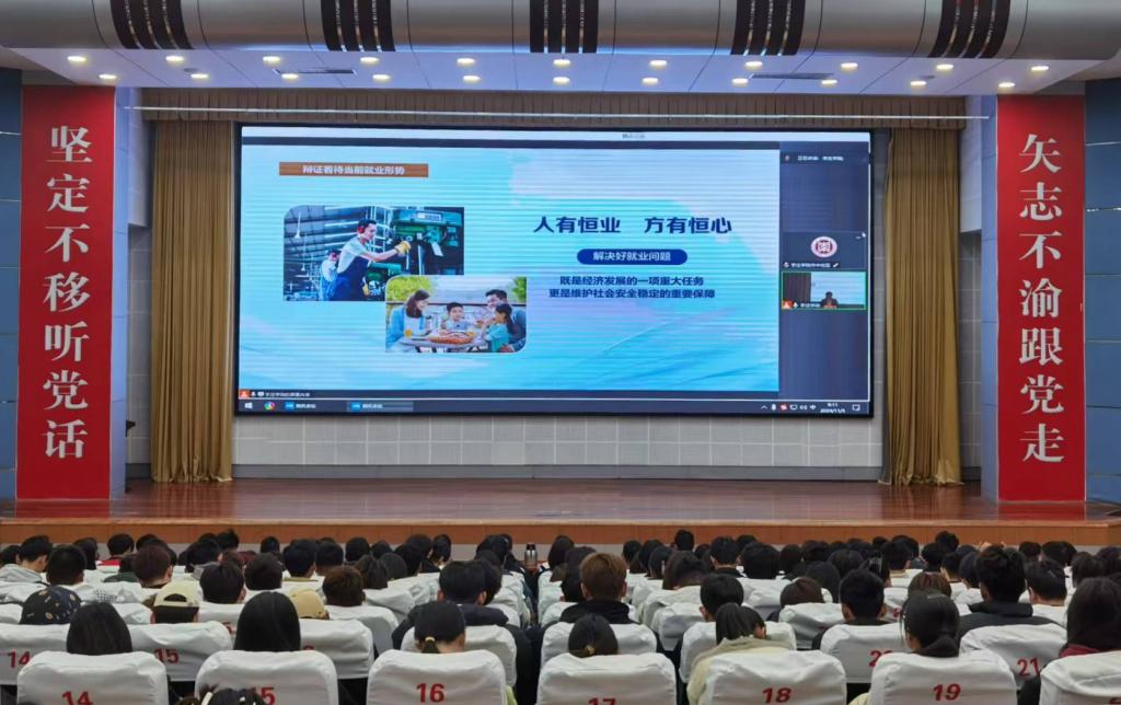 高峰在主持时指出,张宏伟书记的报告内容丰富、讲解透彻,深入浅出、情真意切,全方位多角度深入解读,帮助大家正确认识就业形势,既是一堂解决思想问题的思政课,又是一场解决实际问题的交流会。希望同学们珍惜此次难得的学习机会,厚植家国情怀、勇担时代重任,认清就业形势、把握就业机会,通过扎实学好专业知识、构建核心竞争力,积极参与社会实践、增强综合素质,持续完善自我、丰富个人技能等途径,树立正确择业观念,提高就业能力。