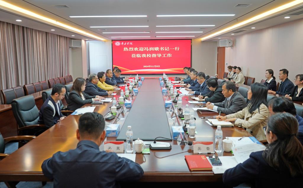 高峰代表学校致辞,对冯润娥一行表示热烈欢迎,并简要介绍了学校的办学历史、办学规模、人才培养、教学科研、服务地方、文化建设、对外交流合作等情况。高峰重点介绍了我校航空服务相关专业的办学情况和毕业生就业情况,指出学校十分重视航空服务专业学生能力的培养,为两个专业建设了完备的实习实训条件并与合作企业联合,开好开足各类专业课程,培养学生的空乘服务、地勤服务及民航商务能力。期待与中国航空运输协会在人才培养、科学研究等方面开展更加深入的合作与交流,共同为推动中国民航事业的繁荣与发展贡献智慧与力量。