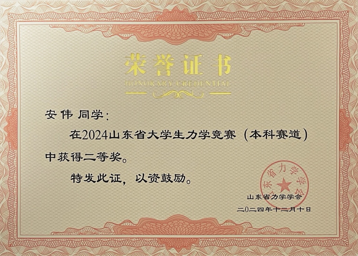 12月14日,山东省力学学会2024学术年会在山东济南落下帷幕,会上公布了2024山东省大学生力学竞赛获奖结果。我校城市与建筑工程学院首次参赛,荣获本科组二等奖1项、三等奖1项,专科组三等奖1项。我校荣获优秀组织单位称号。