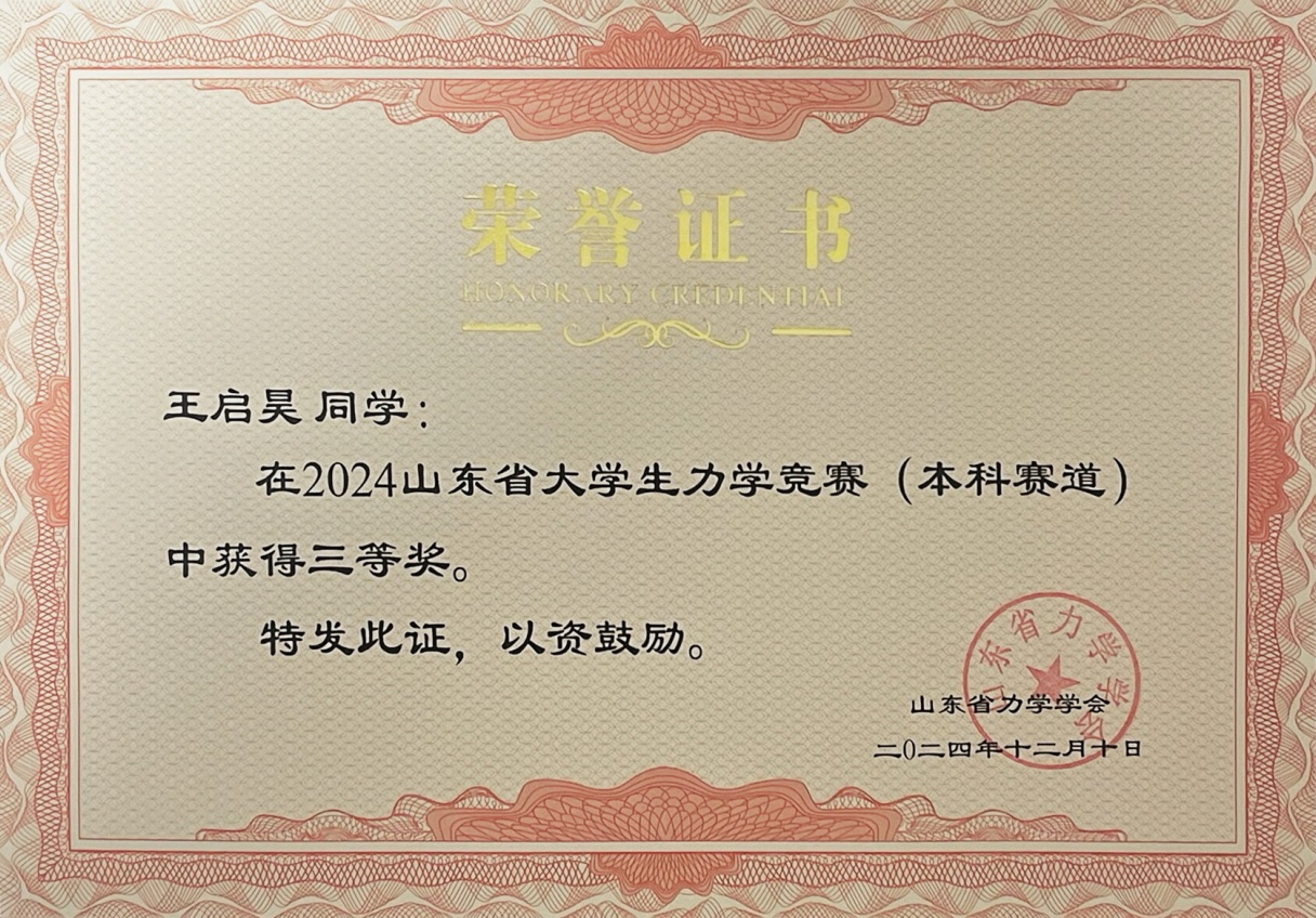 我校在2024山东省大学生力学竞赛中喜获佳绩