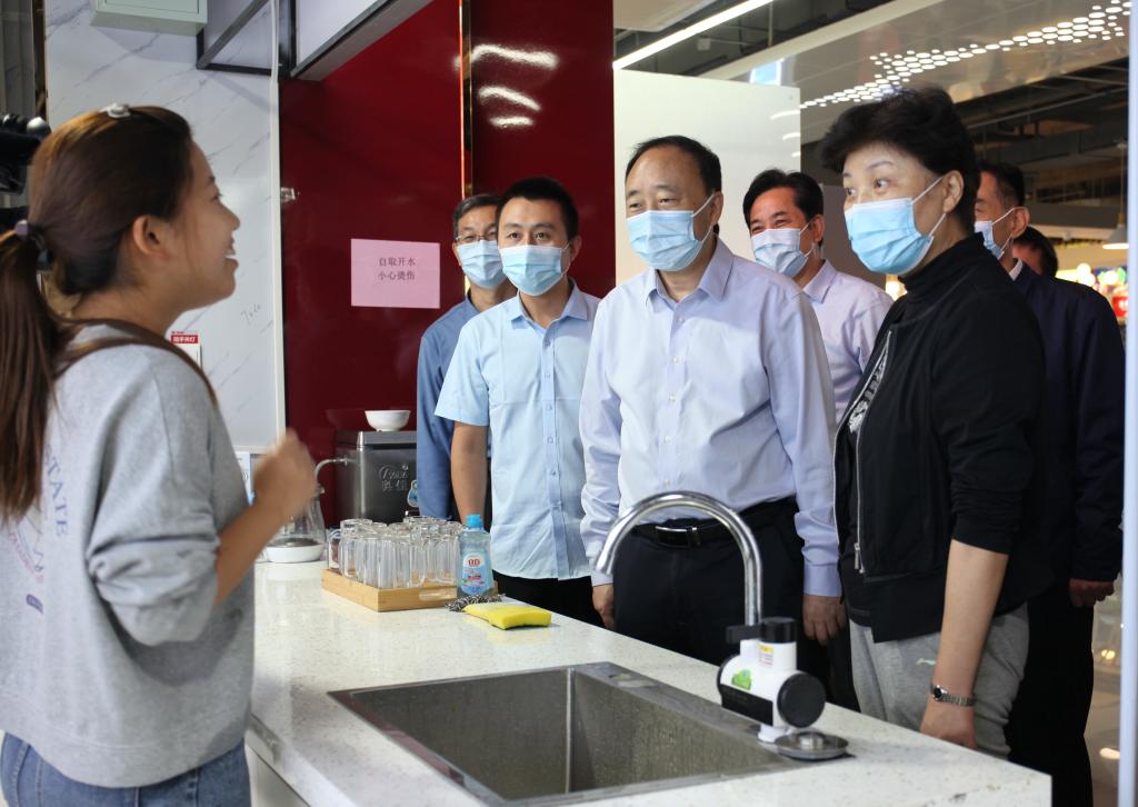 霍媛媛一行实地走访了校园、学生宿舍、学生餐厅、超市,调研了解学校疫情防控、学生住宿环境、生活服务设施、消防设施以及校园周边环境等情况。调研过程中,霍媛媛一行和同学们亲切交谈,详细了解同学们的学习、生活情况。