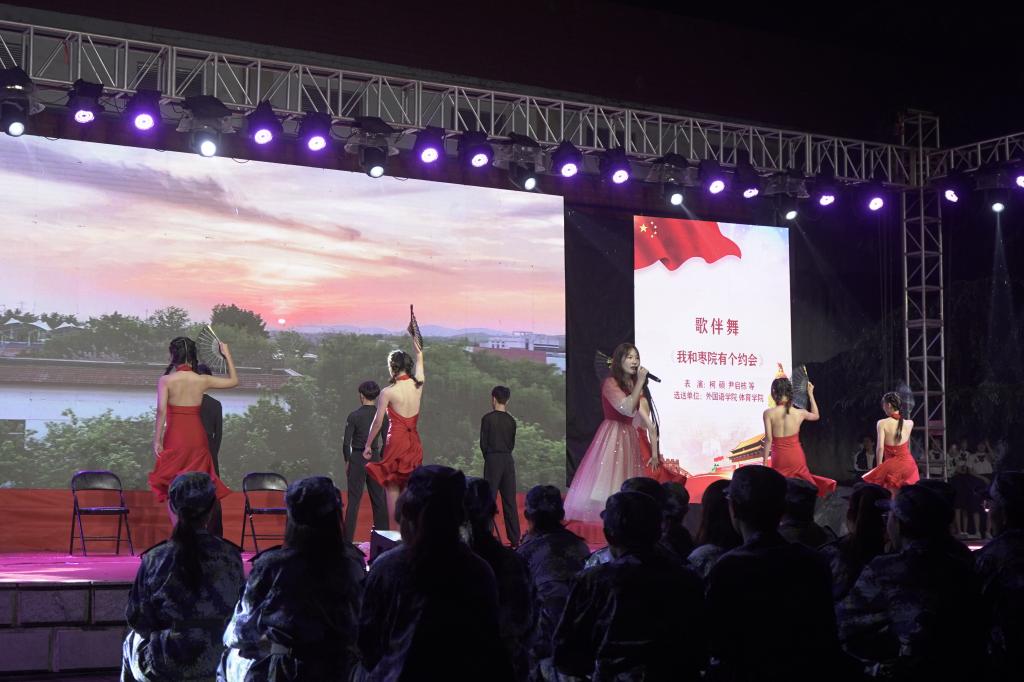 整场晚会分为“爱国之情”“枣院之约”“青春之歌”三个篇章,节目内容丰富、形式多样,通过歌曲、舞蹈、朗诵、情景表演等多种艺术形式,配合舞台多媒体手段,充分展示了我校2021级新生良好的精神风貌和靓丽风采。